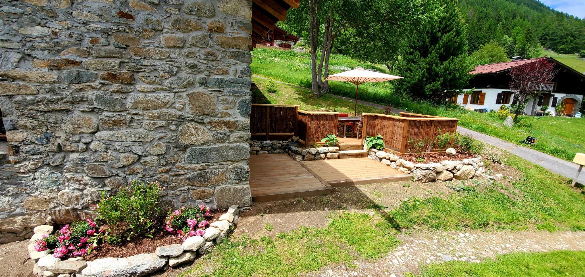 Chalet le Caprin idéal pour 2 à 4 personnes. Surface de 43m² avec 1 chambre lit double et 1 chambre lits supperposés. Salle de bain et wc indépendant. Terrasse privative mais non clos. Le logement est au rez de chaussée et l'étage du chalet comprte un autre logement de 8 personnes sans vis à vis.